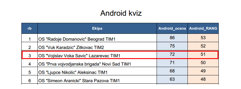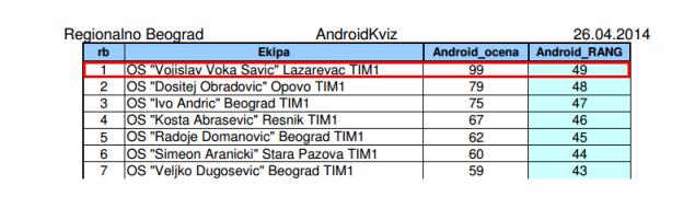 Алекса Минић је у појединачној конкуренцији на Андроид квизу освојио ТРЕЋЕ МЕСТО, што представља највећи успех наше школе на овогодишњим такмичењима.