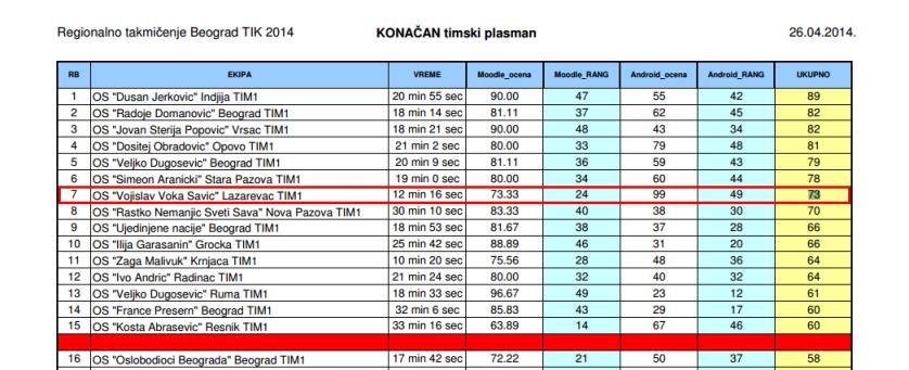 У генералном, тимском, пласману заузели су 7. место од укупно 51 такмичарског тима чиме су обезбедили учешће на предстојећем Републичком такмичењу.