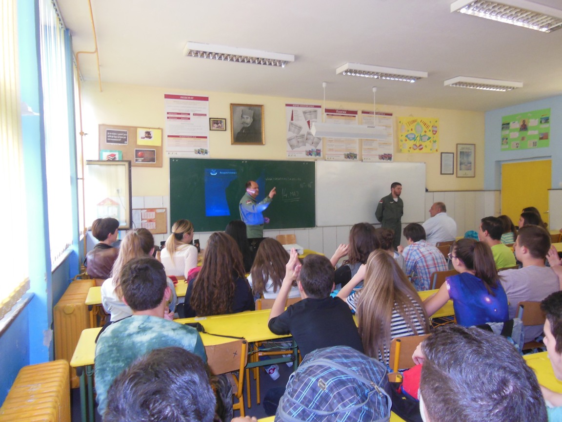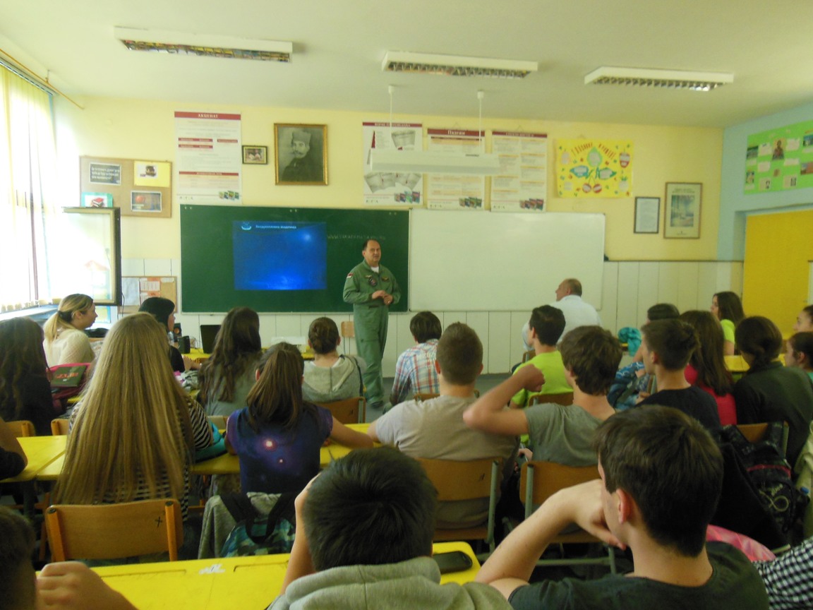 Ваздухопловна академија се представила ученицима осмог разреда у нашој школи са својим цивилним и војним смеровима .