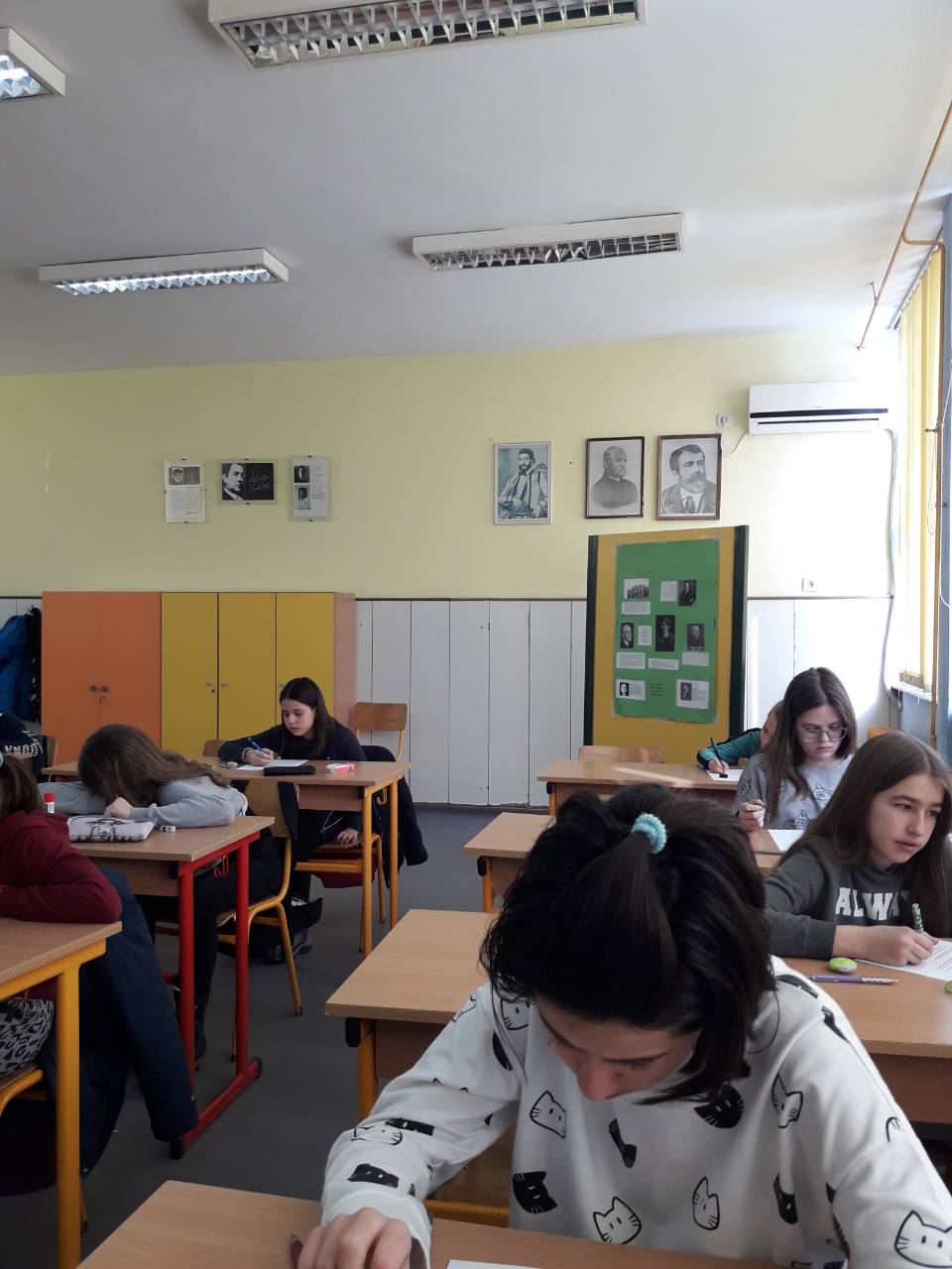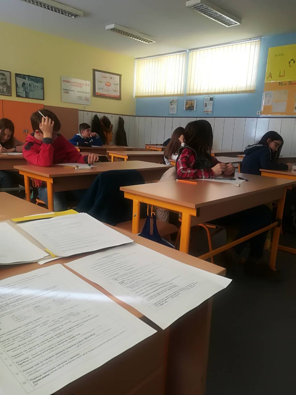 Ученици су били подељени у две учионице. У једној учионици ђаци, разврстани у четири екипе, решавали су задатке из језика који су били прдстављени укрштеницом, осмосмерком, језичким мозгалицама и слагалицом. Њихов задатак је био да уочавају, одгонетну, сложе делове у целину, препознају писца и разне научене појмове, да повежу стечена знања и покажу брзину при решавању задатака.