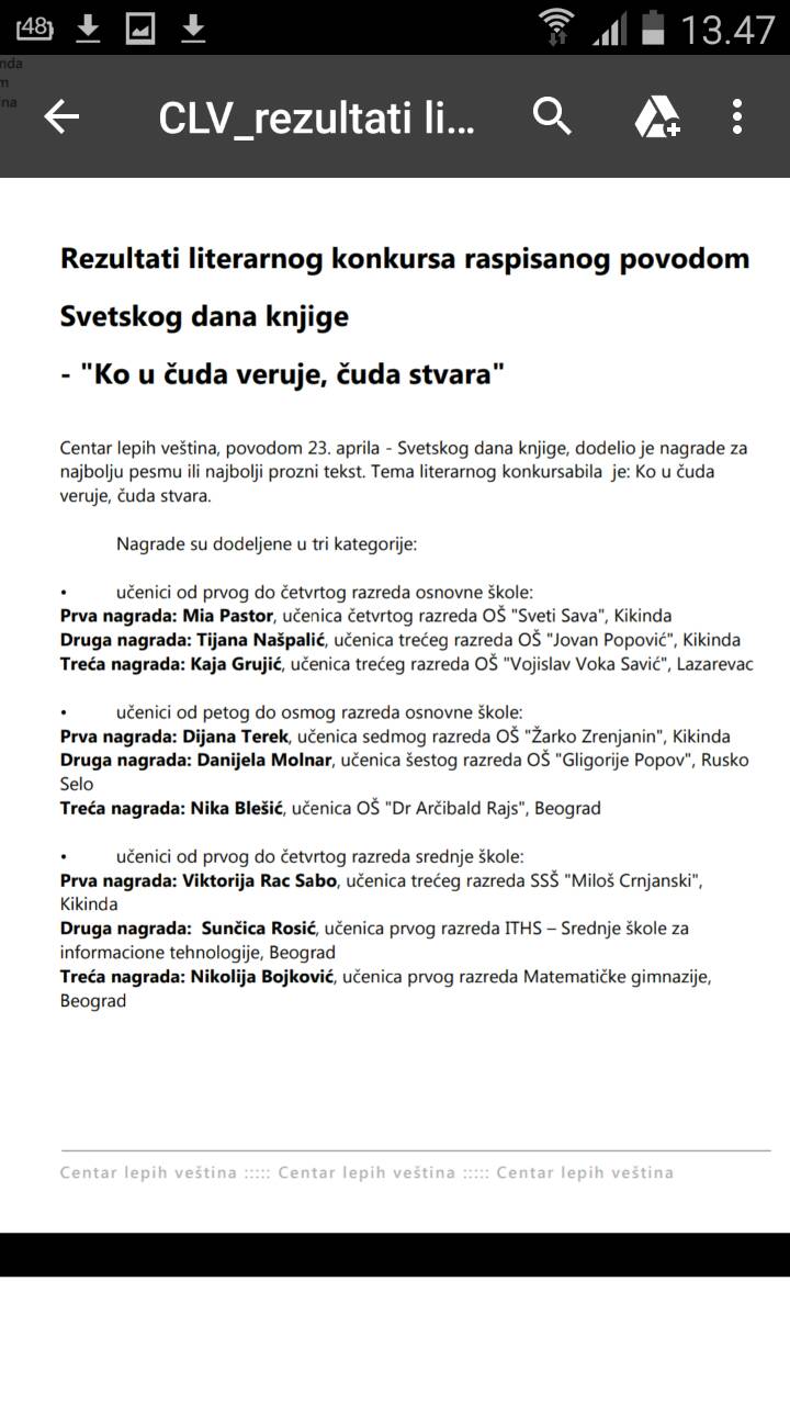| Невена Јевтић 8-1 је освојила 1. место на ликовном раду |