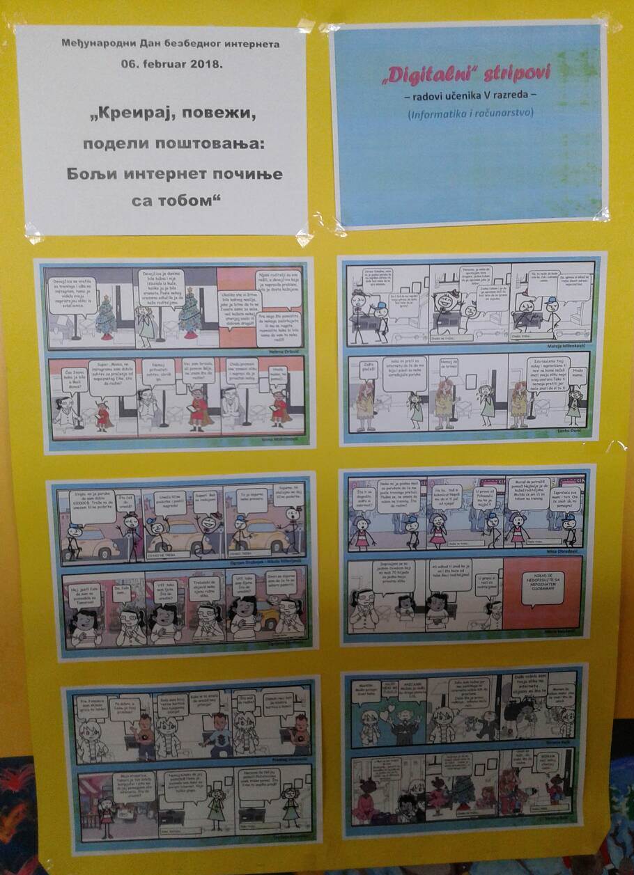 Наша школа се придружила обележавању овог дана постављањем изложбе стрипова ученика V разреда, креираних на часовима информатике и рачунарства у програму Make beliefs comix. Тема одабраних стрипова је била "Интернет бонтон" и "Дигитално насиње".