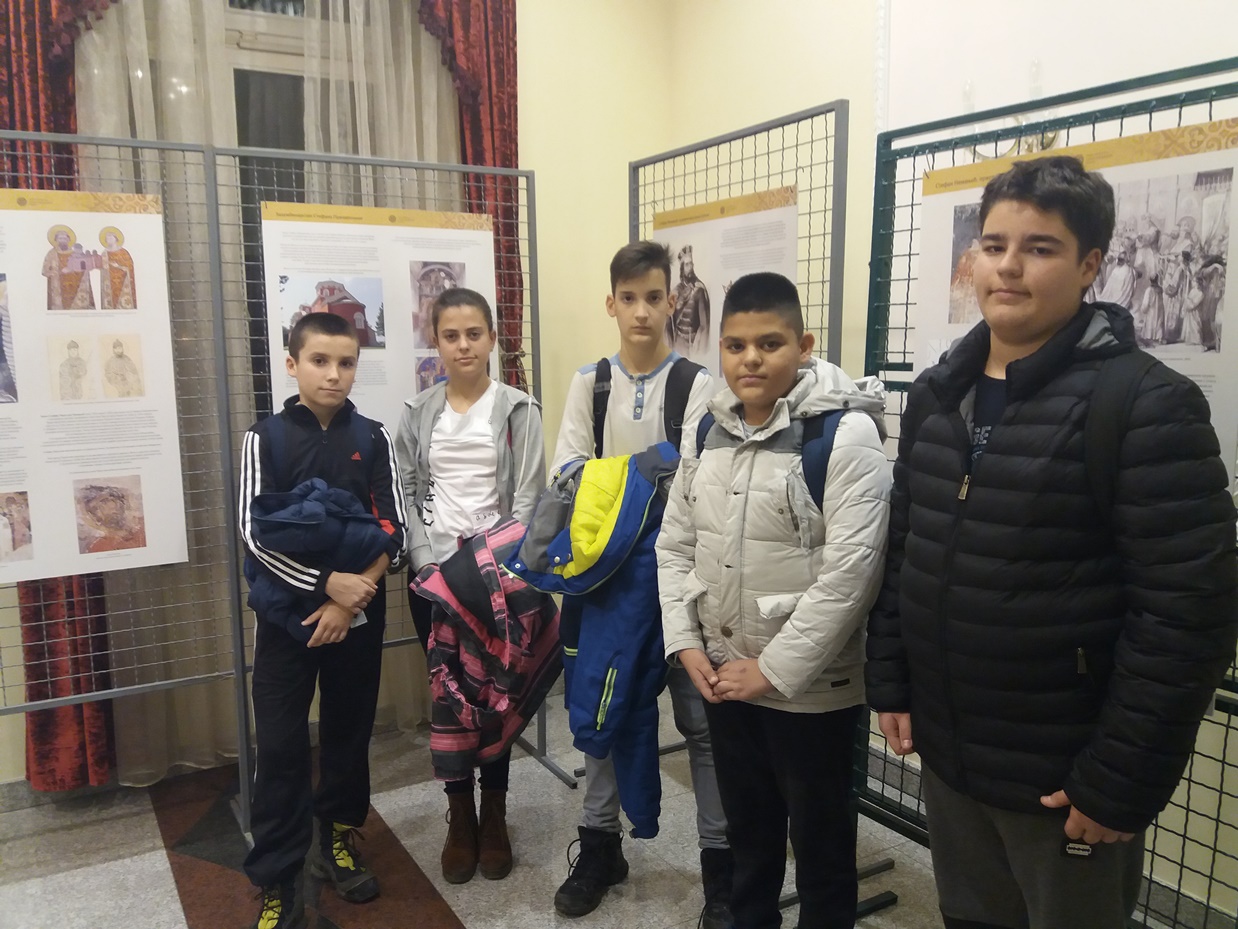 У сали парохијског дома у Лазаревцу ученици 7-1 и 7-2 посетили су изложбу фотографија „У сусрет руском цару“.