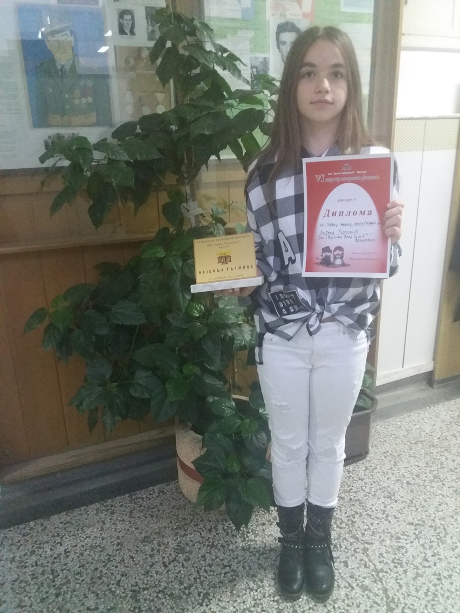 Анђела Поповић ученица 6-1 одељења наше школе добила је