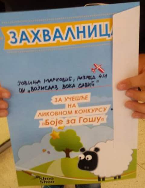 На ликовном конкурсу "Боје и речи за Гошу" награђени су следећи ученици наше школе:
