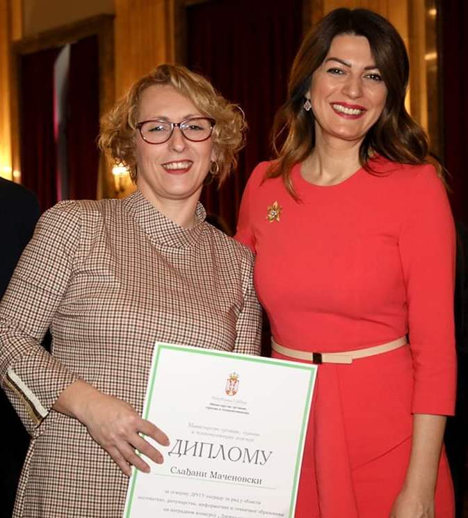 На наградном конкурсу „Дигитални час“, ​организованог од стране ​Министарства трговине, туризма ​и телекомуникација, а чији је циљ унапређење примене информационо-комуникационих технологија (ИКТ) у образовном процесу, ​ наставница информатике и рачунарства Слађана Маченовски, са својим радом под називом: Пројектни задатак - Паметни сурфер, освојила је другу награду, чиме је поновила прошлогодишњи успех када је такође освојила другу, а пре две године трећу награду на истом конкурсу.