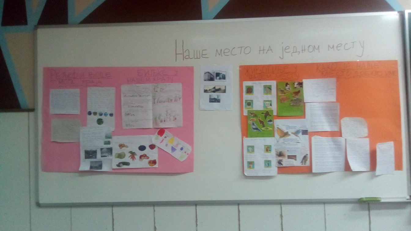 Циљ овог пројекта је да се ученици упознају са својим местом. Радили су у групама и сазнали о облицима рељефа нашег места, упознали биљни и животињски свет, донели старе фотографије места и сазнали како је наше место добило име.