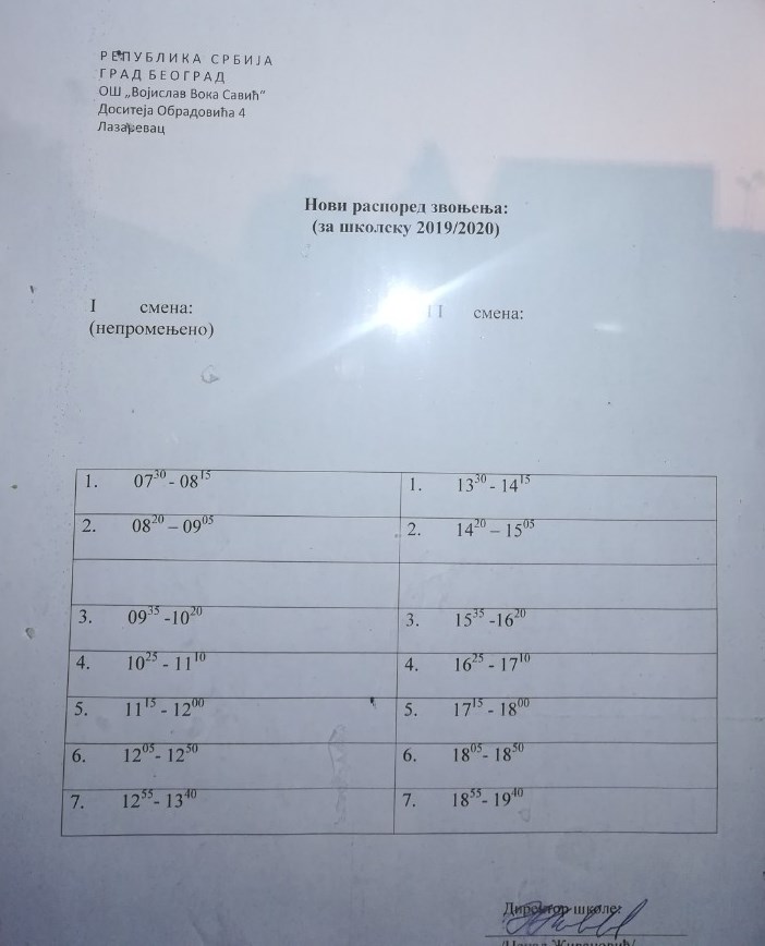 РАСПОРЕД НАСТАВЕ ЗА ОСНОВНУ ШКОЛУ