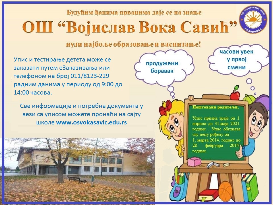 Ученици ОШ "Војислав Вока Савић" полагаће Завршни испит у учионицама у следећим терминима:
