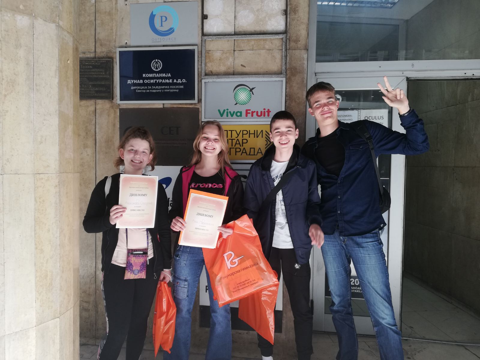 које ће бити одржано 5. јуна у Београду. Он је први ученик наше школе који је изборио пласман на Државно ниво овог веома захтевног и тешког такмичења.
