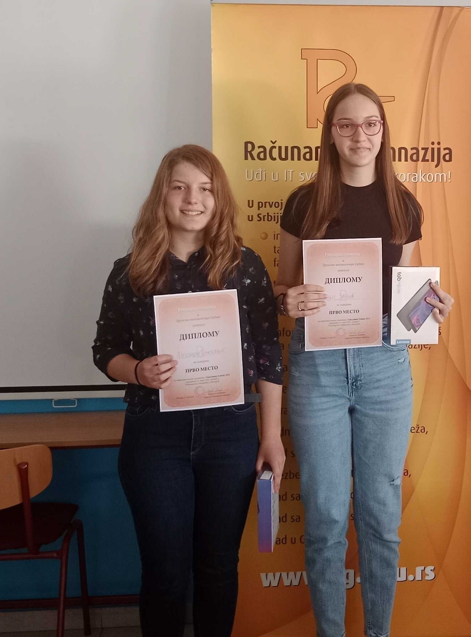 Вања и Александра су као награду добиле по Леново таблет и књиге у издању Порталибриса, а њихова наставница поклон ваучер за семинар у организацијаи Рачунарске гимназије.