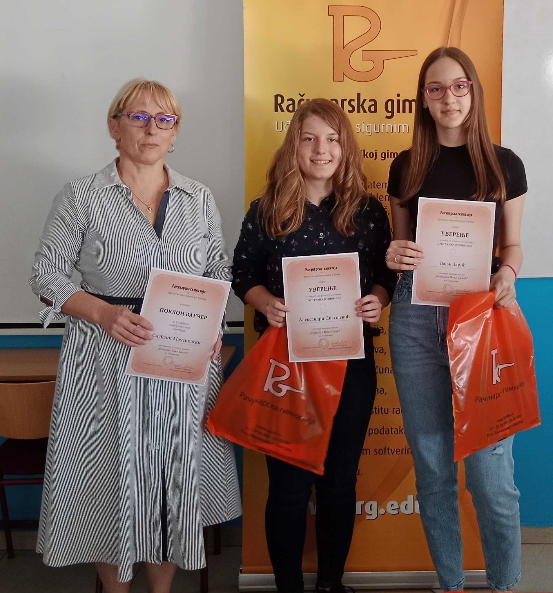 иако тек почетници у програмирању, су били најуспешнији и већ сада довољним бројем освојених поена обезбедили себи пласман на Окружно такмичење из програмирања које је планирано за фебруар месец. Други круг квалификација биће одржан 11.12.2021, а трећи 23.1.2022. године.