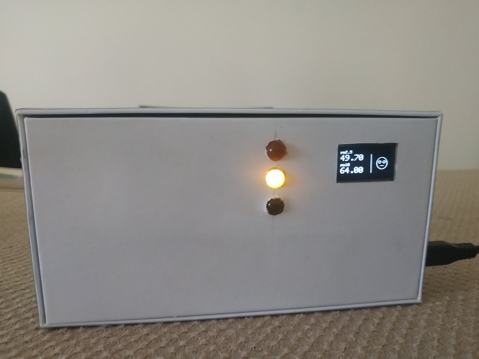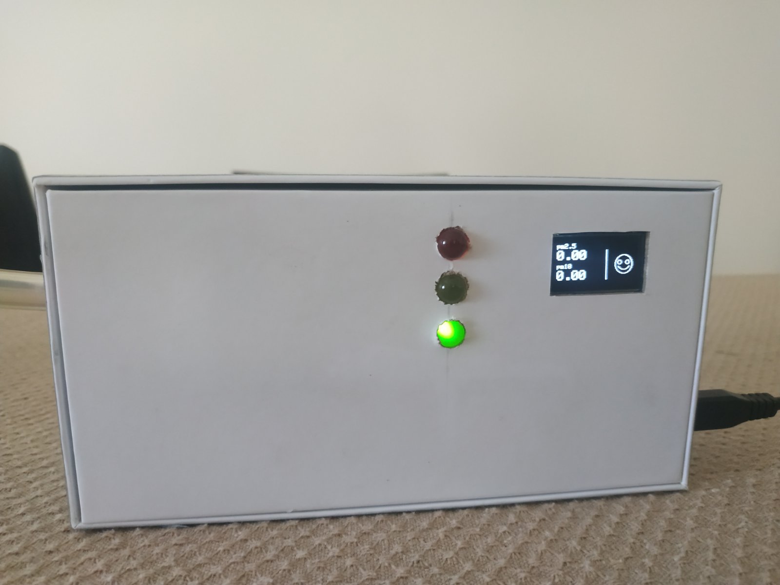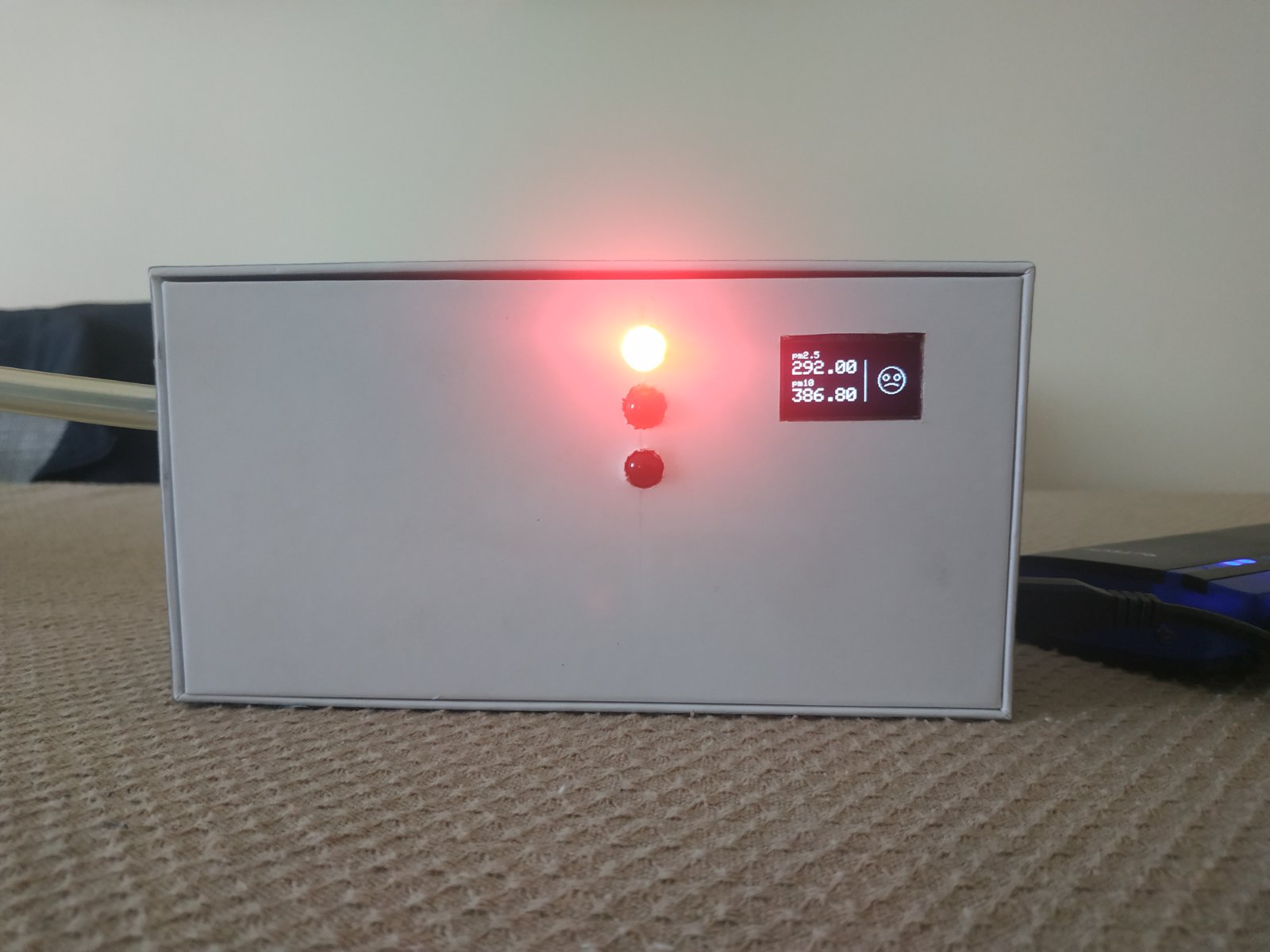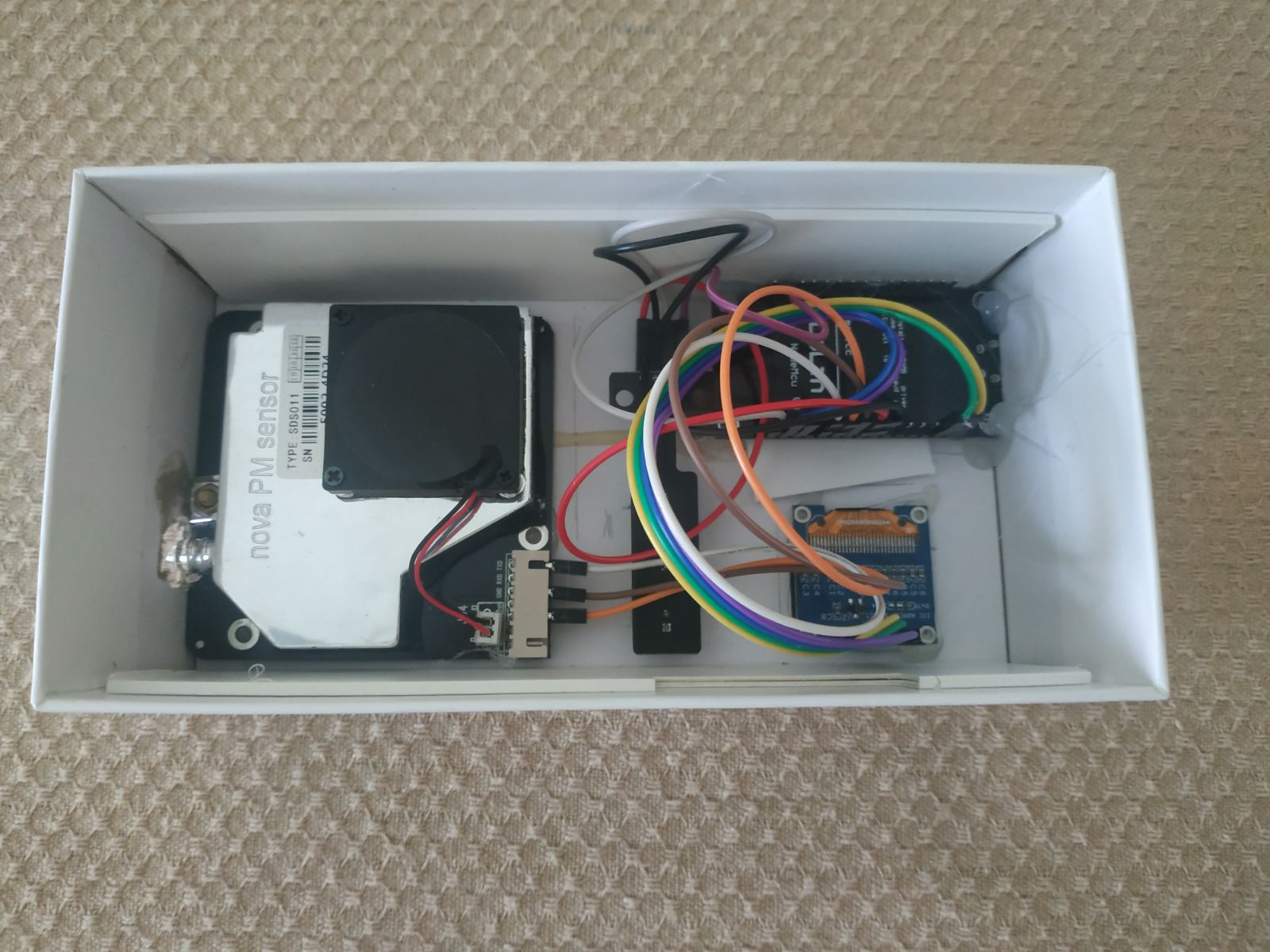 У самој унутрашњости овог уређаја се налази Nova PM сензор који мери количину ПМ честица у реалном времену и те информације шаље даље остатку уређаја. Те податке прима Node Mcu развојна плоча, обрађује их, и на основу тога приказује информацију о квалитету ваздуха уз помоћ ОЛЕД дисплеја и ЛЕД диода на начин који је разумљив свим људима.