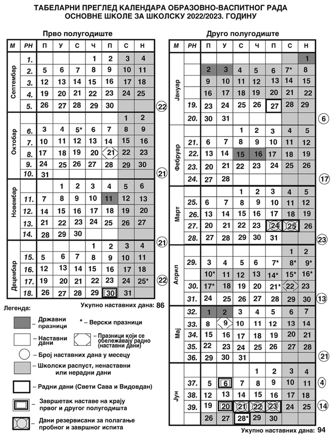 РАСПОРЕД ЗВОЊЕЊА (ВАЖИ ОД 1.9.2022.)