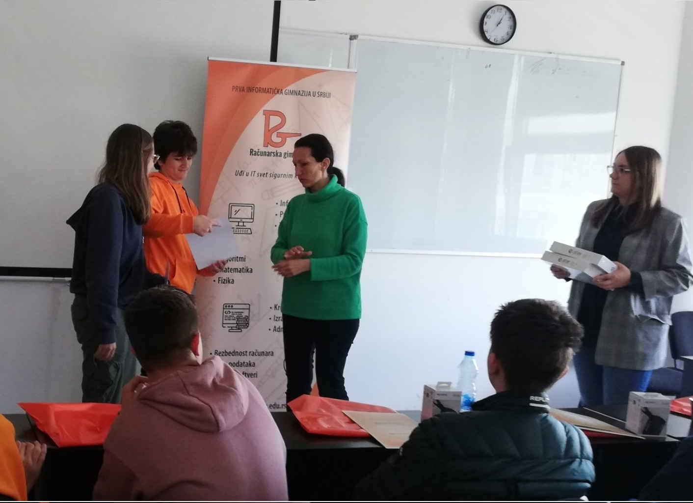 Магдалена и Ђурађ су као награду добили по таблет уређај и књигу, а наставници је додељен ваучер за похађање семинара у организацији Рачунарске гимназије. Поред њих, у финалу је учествовао још један наш тим, Иван Безаревић и Страхиња Бранковић.