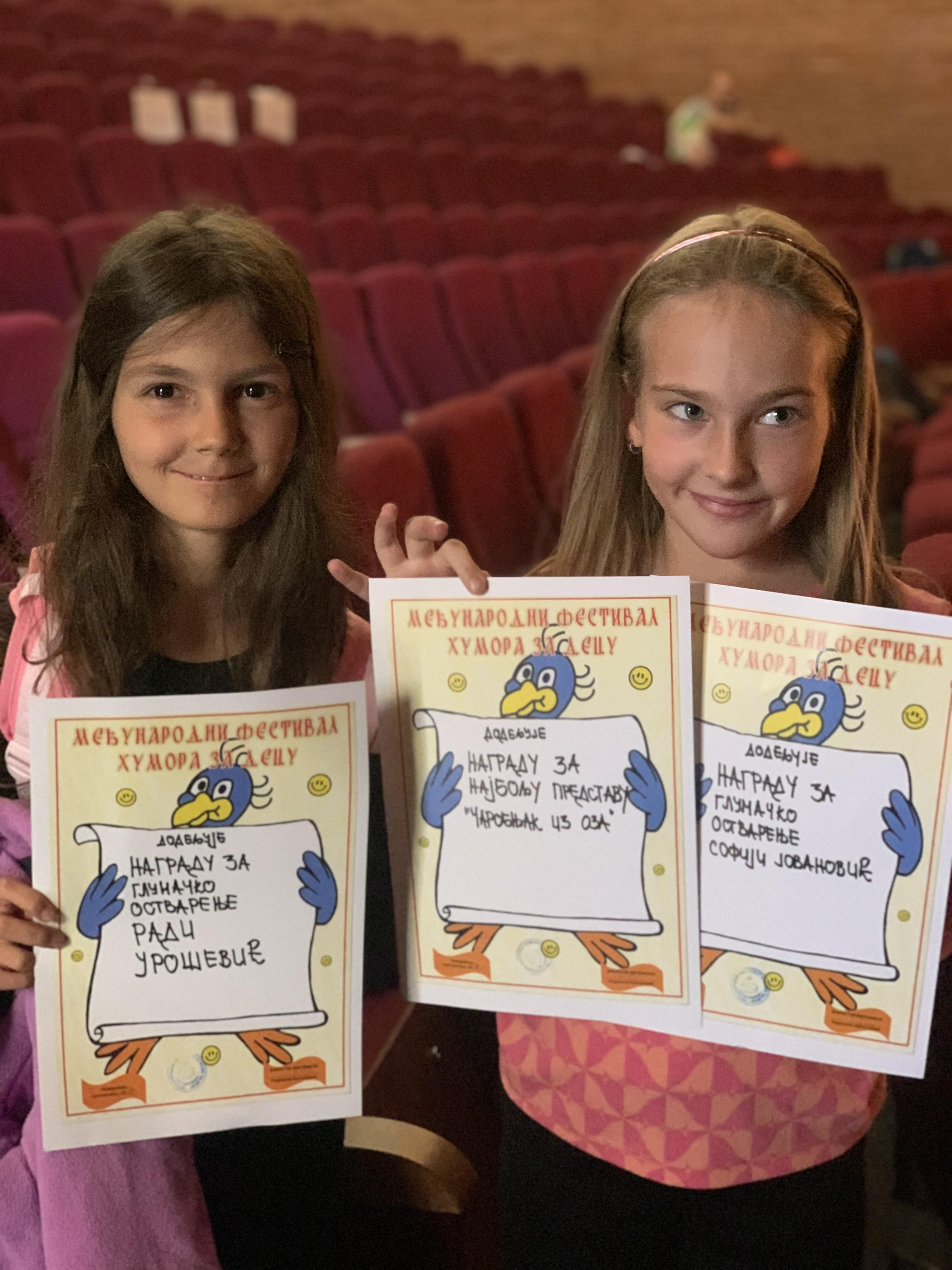 НАГРАДЕ НАШИМ УЧЕНИЦИМА НА ФЕСТИВАЛУ ХУМОРА ЗА ДЕЦУ
