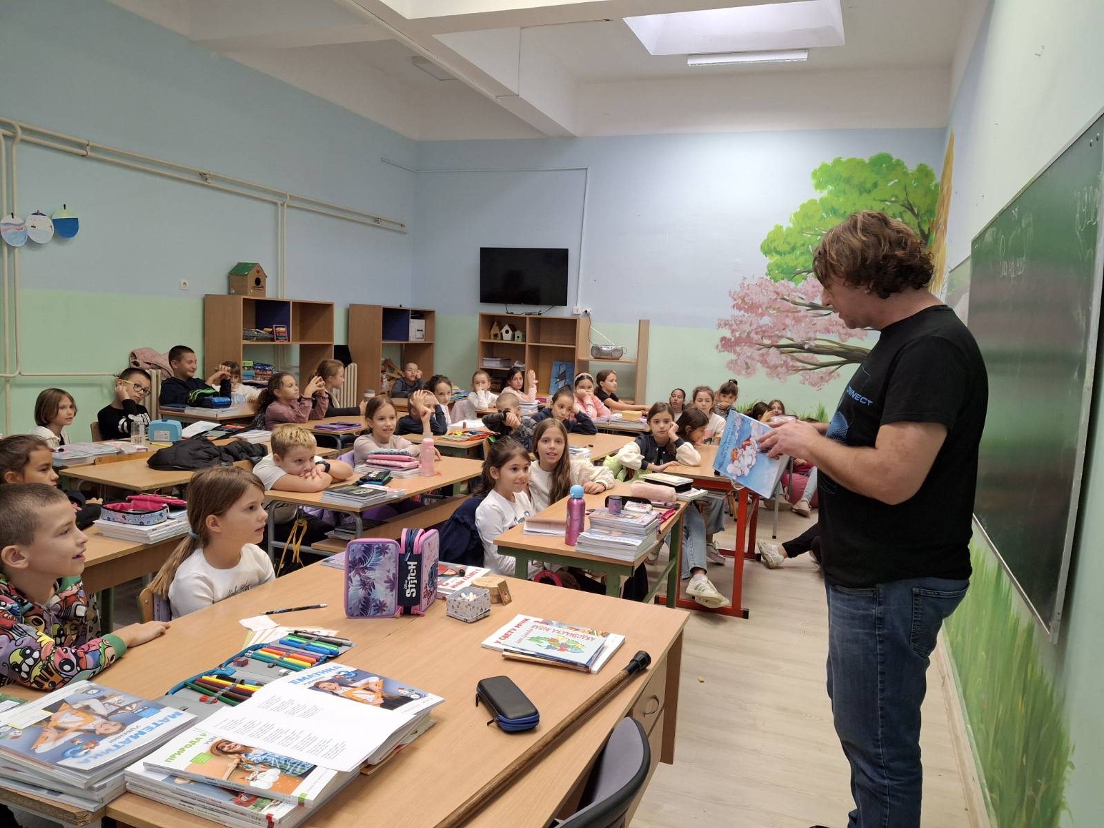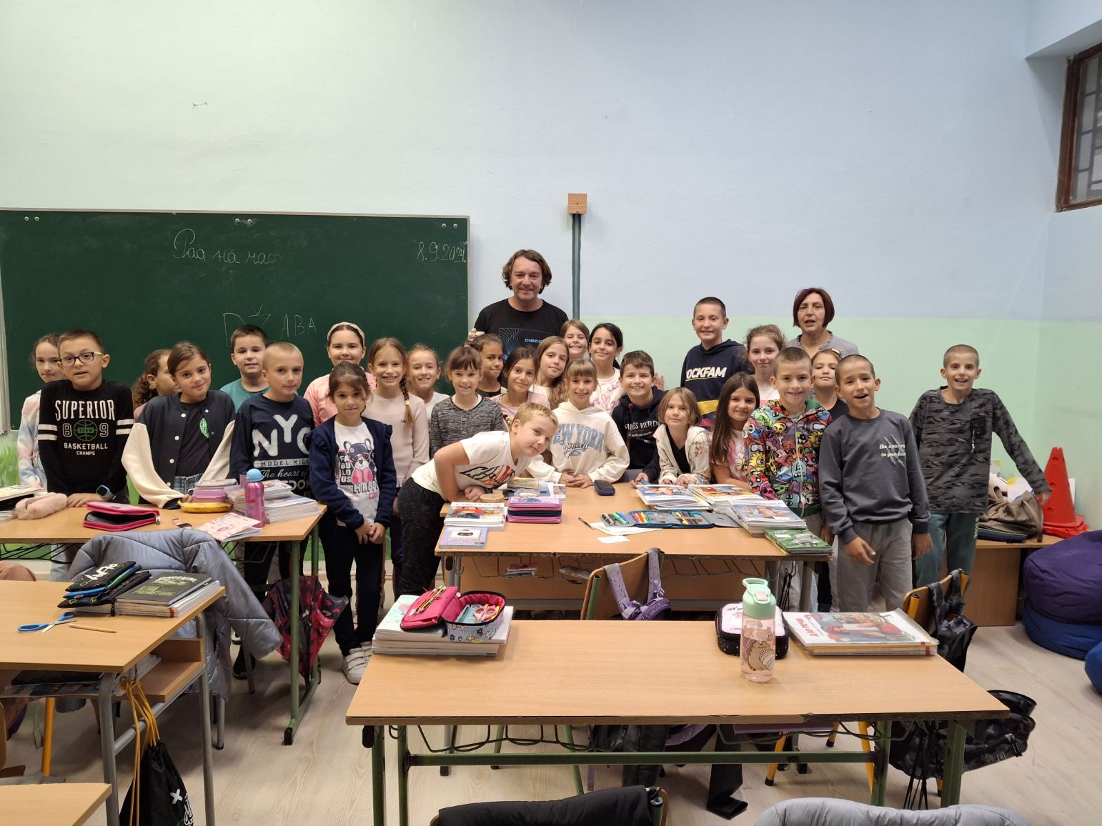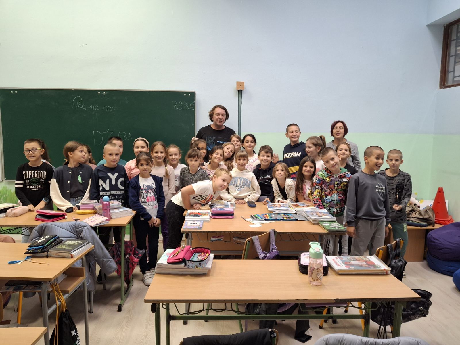 Другог дана Фестивала хумора за децу, нашу школу је посетио дечији писац Душко Домановић. Душко је водио разигран разговор за ученицима 3/2 и 5/4 одељења и представио своје стваралаштво. Било је право уживање слушати његове стихове.
